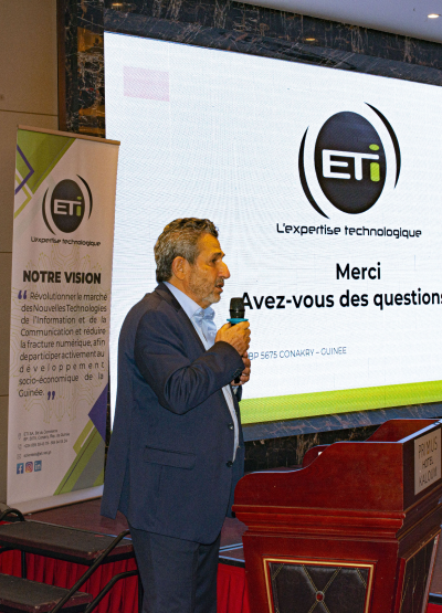 ETI, L'Expertise Technologique ETI SA est une société de droit guinéen, créer en 1984, par M. Latif Taleb. ETI SA opère dans la digitalisation, elle est à la fois un intégrateur et un développeur d’applications. Certifié ISO 9001, nous proposons aux sociétés de la place, des solutions sur mesures ou clé en mains, quel que soit votre secteur d’activité et votre taille d’entreprise. ETI est la seule société à être à la foi FAI et Intégrateur de solution tout en étant le seul point de contact en matière de besoins informatiques.